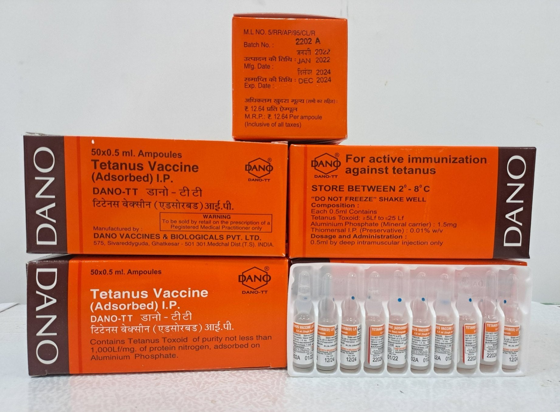 Dano TT is a purified Tetanus Toxoid Adsorbed Vaccine, used for active immunization against tetanus in both children and adults. Manufactured by Dano Vaccines & Biologicals Pvt. Ltd., this vaccine is essential in preventing tetanus and neonatal tetanus, and is widely used in national immunization programs.