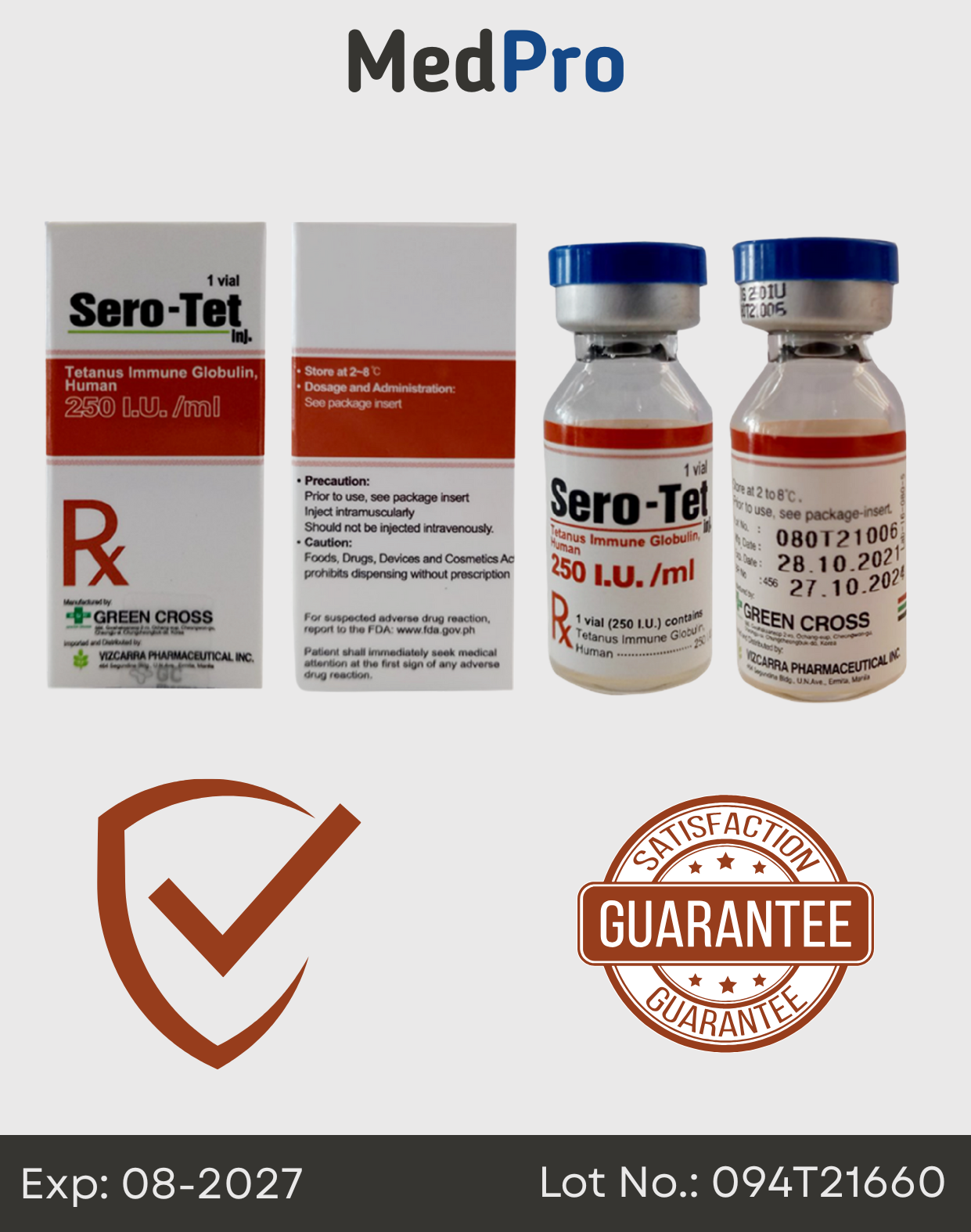 Sero-Tet is a Tetanus Immune Globulin (TIG) derived from human plasma. It provides passive, immediate protection against tetanus by supplying ready-made antibodies that neutralize the Clostridium tetani toxin — the bacteria responsible for tetanus (lockjaw).