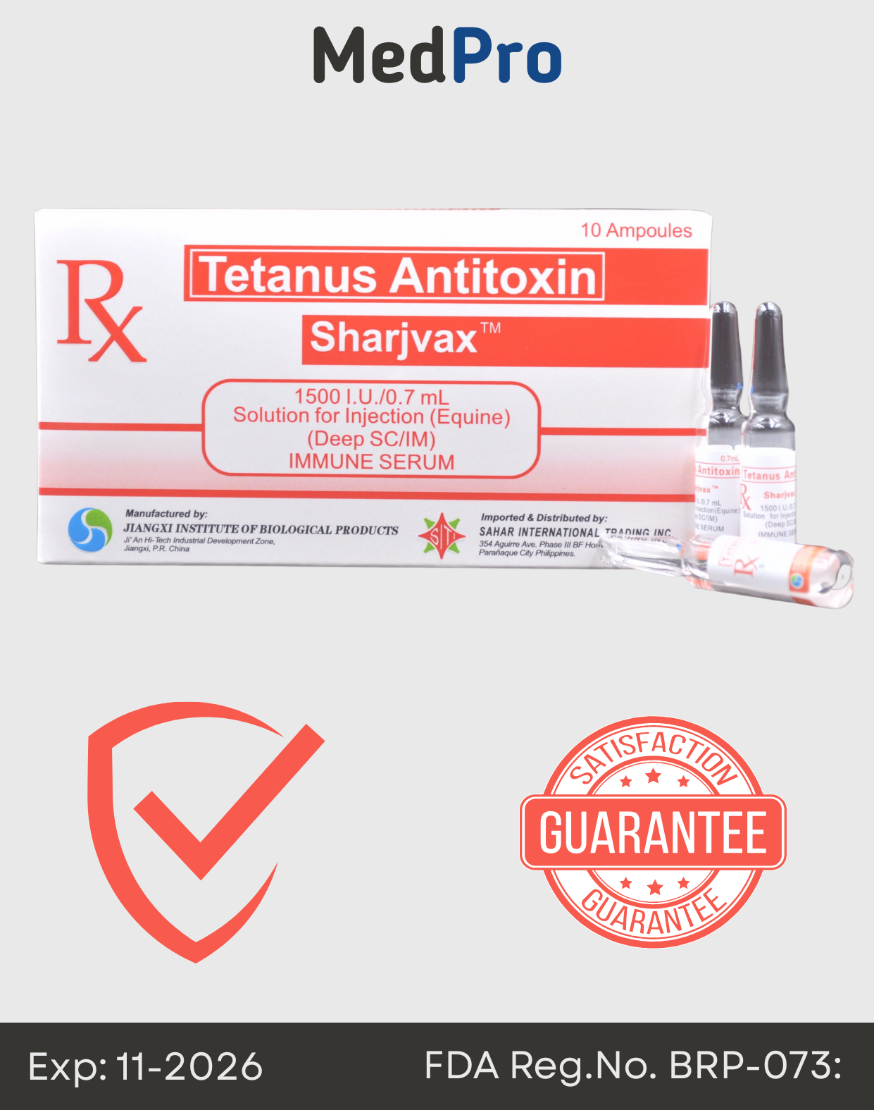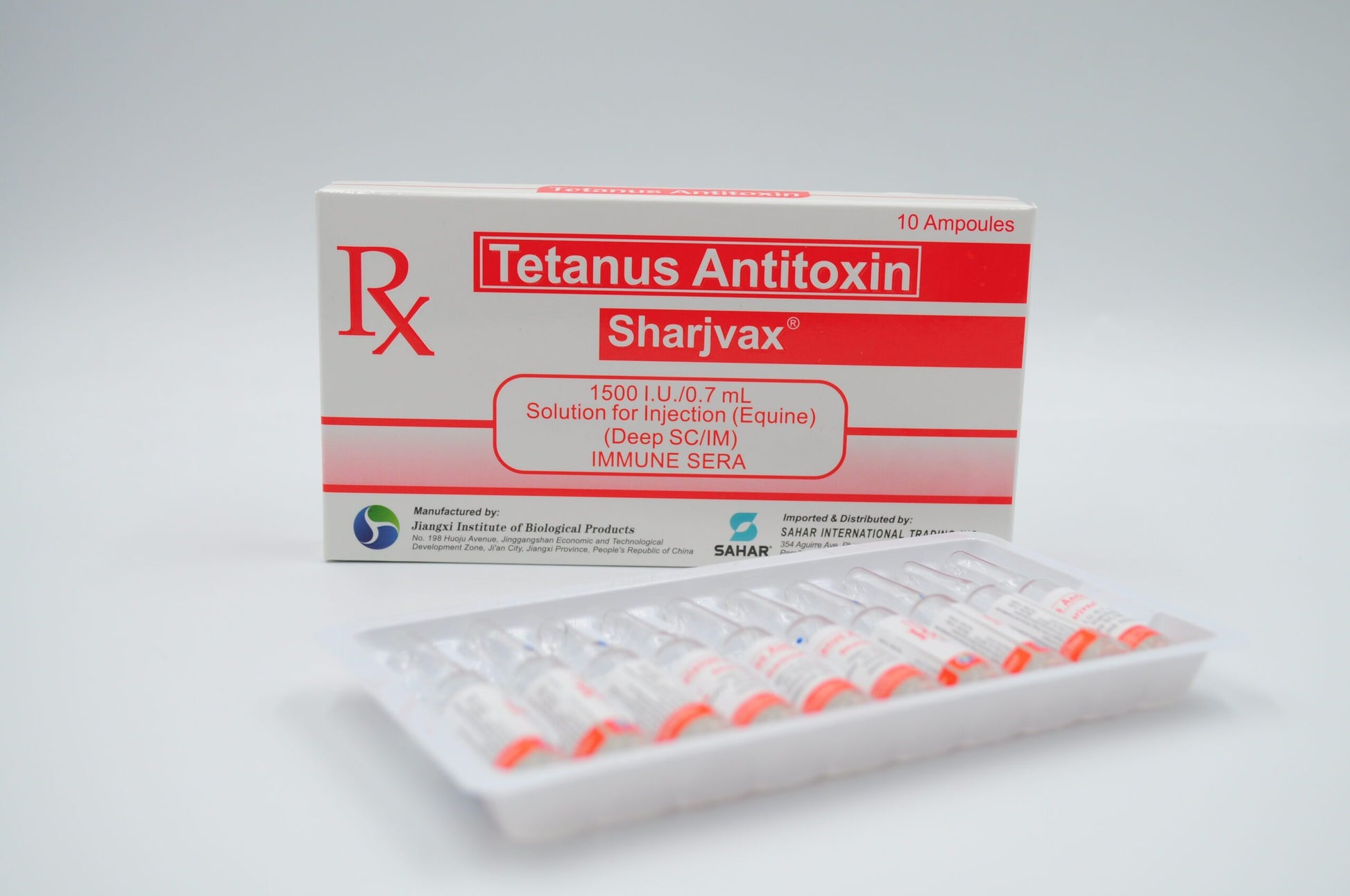 Sharjvax Tetanus Antitoxin (ATS) is an equine-derived immunoglobulin used for the prevention and treatment of tetanus. It contains antibodies that neutralize the toxins produced by Clostridium tetani, the bacteria responsible for tetanus infection.